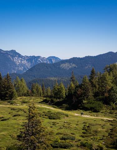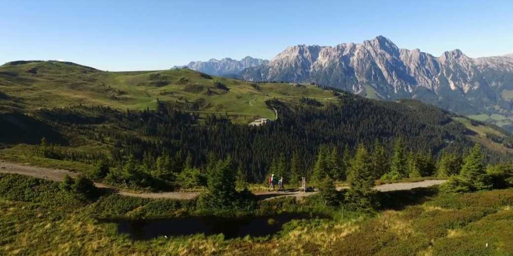 Weiter geht es bergauf über einen Bergrücken zur Wildenkarhütte. An einem Speichersee vorbei wandert man abwärts zur Seidlalm und rund 15 min entlang einer Forststraße zum Asitz. Die kurze Gipfelbesteigung lohnt sich jedenfalls, denn das Panorama ist von ganz oben noch einmal besser und reicht von den Loferer und Leoganger Steinbergen, über das Steinerne Meer bis zu den Hohen Tauern.