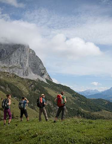 Nach rund einer Stunde entlang des aussichtsreichen Grates erreicht man den Spieleckkogel und steigt über die Route 3 zurück nach Lengau ab.