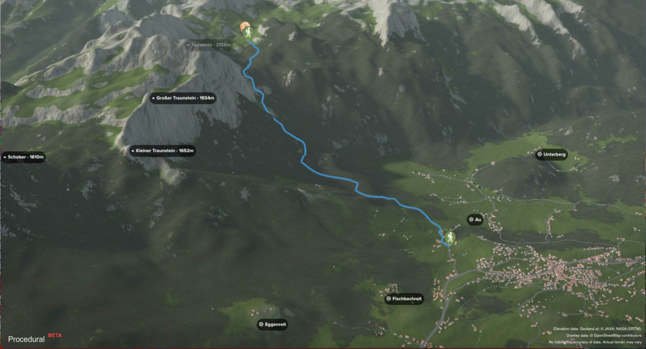 Bis zur Wandalm mit Jagdhütte geht es recht steil durch den Wald aufwärts. Danach folgt ein kurzes Flachstück und danach geht es über das offene Gelände noch einmal kräftig aufwärts bis zur Laufener Hütte auf 1.726 m.