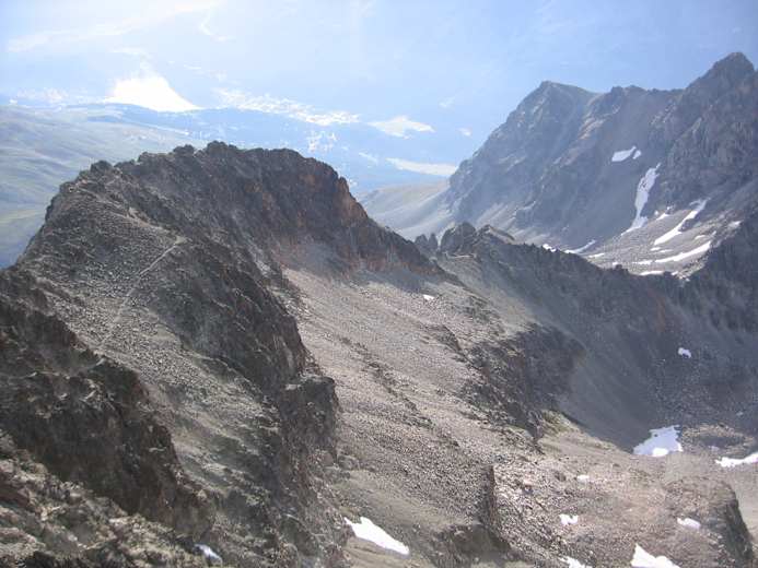 Jetzt ist Ausdauer gefragt, denn der Pfad führt steil bergauf bis man nach guten 6 km die Fuorcla Albana erreicht, den wunderbaren Übergang zum Julierpass. Am Sattel wählt man jedoch den rechten Weg und steigt weiter bergan zunächst nach Nord, dann nach West, immer dem Grat zum Gipfel folgend.