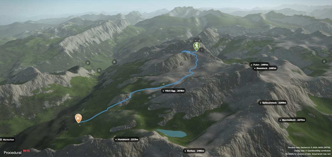 Von der Lidernenhütte (1.727 m) wandert man aufwärts zum Felszahn des Schmalstöckli und an diesem vorbei über die Lidernenalp zu den "Seelenen", mehreren kleinen Lacken und Seen auf ca. 1.940 m.