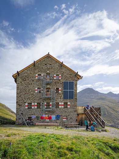 Nach rund drei Stunden Gehzeit erreicht man schließlich die Martin-Busch-Hütte auf 2.501 m.