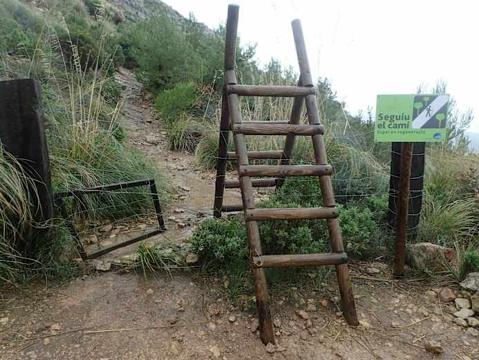 Sa Dragonera im Regen Foto: Ingrid Retterath Can Tomevi Foto: Ingrid Retterath Mit Seil gesicherte Kletterstelle Foto: Ingrid Retterath Blick nach La Trapa Foto: Ingrid Retterath Zaunleiter bei La Trapa Foto: Ingrid Retterath In der Mühle von La Trapa Foto: Ingrid Retterath Das terrassierte Gelände von La Trapa Foto: Ingrid Retterath Bildergalerie (7)