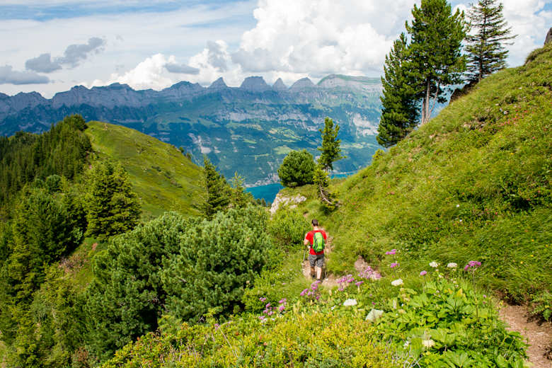 Abstieg mit Aussicht auf Walensee und Churfirsten Foto: Heidiland Tourismus AG Bildergalerie (6)