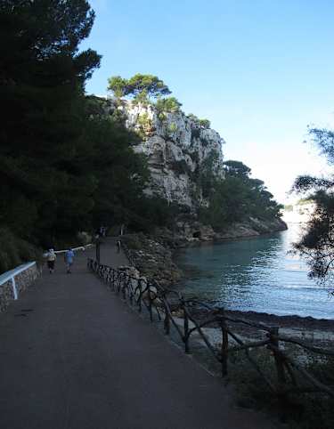 Nach einem kleinen Abstecher nach links zu einem Aussichtspunkt steigt man durch dichter werdenden Steineichenwald zum Coll de sa Font auf, hält sich rechts und wandert durch raue Felslandschaft zu einer Mauer am Coll de Pedregarets. Auf der anderen Seite der Mauer liegt das Ende einer geteerten Sackgasse, die sich bei einem Blick auf das rostige Schild mit der Aufschrift „Agua Binifaldó“ als Zufahrt zu einer ehemaligen Abfüllanlage für Mineralwasser entpuppt. Der Teerweg führt an der fast ganzjährig trockenen Quelle Font de Pedregaret entlang hinab zum Bildungszentrum Binifaldó.