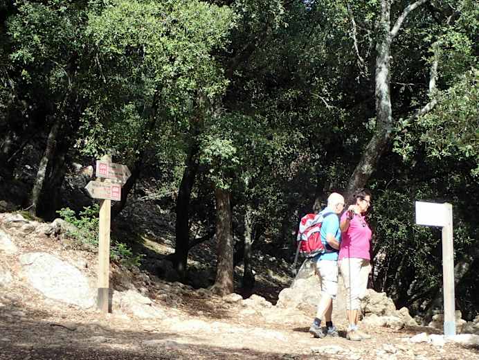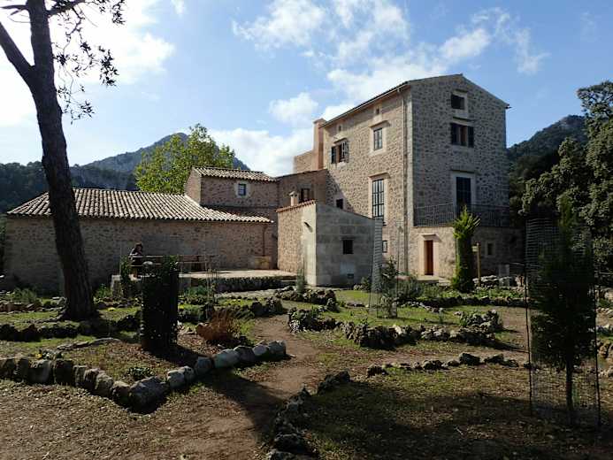 An der Naturparkinformation folgt man den Wegweisern nach rechts Richtung Refugi de Son Amer, steigt über die Leiter neben einem Tor und passiert die Mühle von Lluc. Neben einer Trockensteinmauer wandert man bergauf durch schattigen Wald zum Refugi Son Amer. Von dort führt ein Pflasterweg hinab zu einem Schottersträßchen und an einem Parkplatz entlang. Man kreuzt die Zufahrtsstraße zum Kloster und nimmt an der fast ganzjährig trockenen Quellfassung der Font de s'Ermita den Weg nach links bergauf.