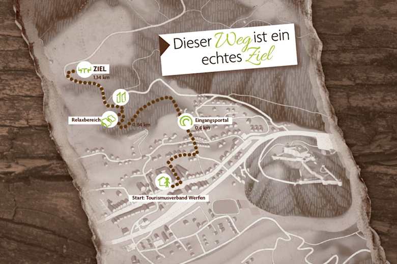 Beginnend im Ortszentrum von Werfen führt der Trail auf naturbelassenen, aber trotzdem gut begehbaren Wegen. Hier wurde der bestehende Wanderweg „Kaisersteig“ zu einem interessanten Themenweg umgestaltet.
