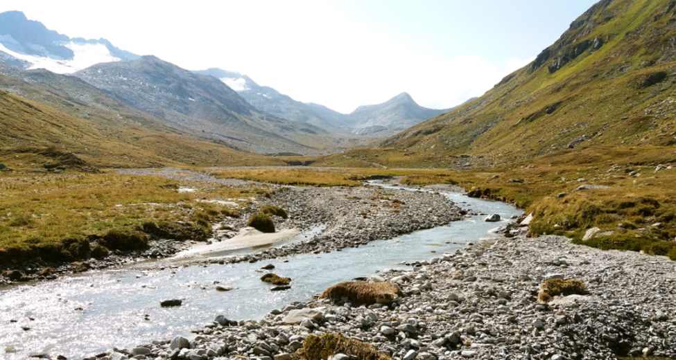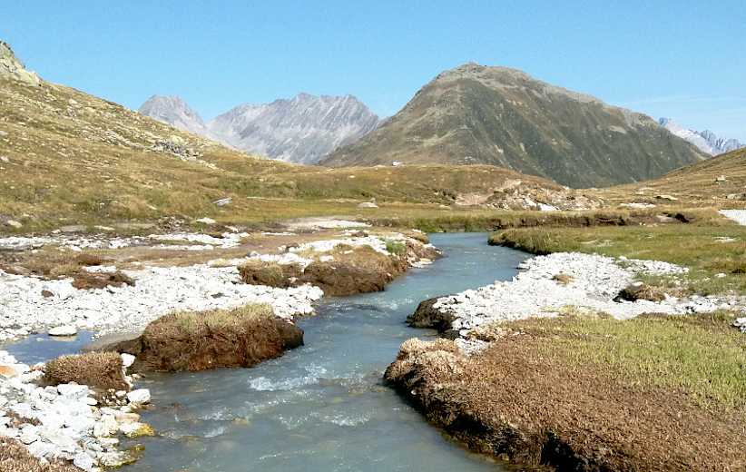 Von der Maighelshütte (2.310 m) wandert man in südlicher Richtung leicht bergab. Bald erreicht man eine Wegkreuzung mit vier Wegen. Dort hält man sich weiter in südlicher Richtung und spaziert vorbei am Carin See in das unberührte Val Maighels, in dem der Ursprung des Rheins liegt.