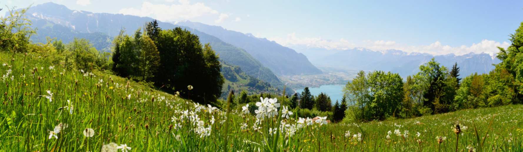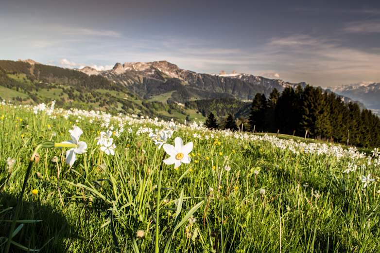 Beste Jahreszeit für die Rundwanderung ist ohne Frage der Mai, wenn die Narzissen in voller Blüte stehen und das Blütenmeer die grünen Wiesen weiss färbt. - Ein einzigartiges Naturschauspiel, das jedes Jahr unzählige Besucher auf die Anhöhen der Montreux Riviera lockt.