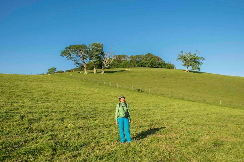 Nun folgt man dem Forstweg kurz nach rechts und wendet sich bei der Wegverzweigung nach links abwärts. Nach der Überquerung des Baches und dem kurzen Anstieg wandert man weiter nach links auf einem schmalen Steig. Auf diesem geht man durch den Wald aufwärts, bis man nach einem Gatter eine Wiese betritt. Man überquert die Wiese und erreicht eine weitere Wiese. Hier biegt man nach links und spaziert am Zaun entlang bis zu den Häusern von Lerryn. Nun geht es nach links zu einer größeren Teerstraße, auf der man nach rechts wandert, bis man auf die Straße trifft, die bereits zu Beginn der Wanderung der Zugang zum Public Bridleway war.