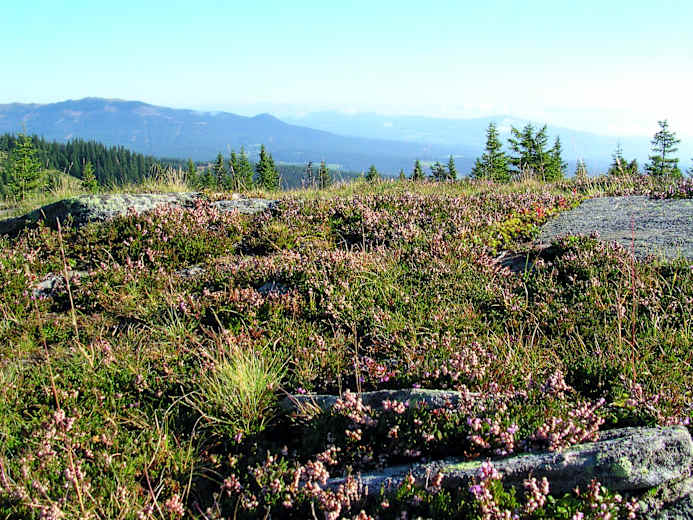 Die Vegetation der Koralm erinnert oberhalb der Baumgrenze stark an Schottland. Vor allem im Herbst, wenn sich die Zwergsträucher rötlich färben und die Gräser golden im Wind wehen ist die Koralm besonders schön.