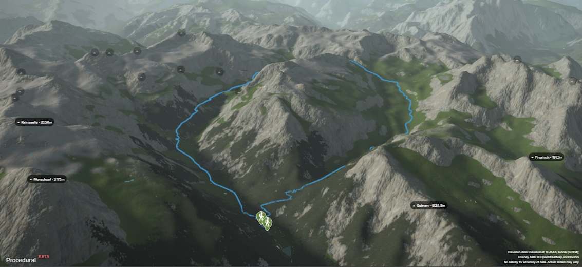 Man folgt nun dem breiteren Weg durch das Murgtal an den Alpen Guflen und Mornen vorbei zurück zum Ausgangspunkt nach Merlen.