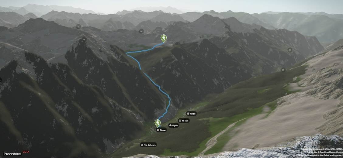 Von Rossa (1.069 m) wandert man über La Piotela und Ör (1.440 m) in das Val de l’Ör, wo man auf ca. 1.600 m den Weg trifft, der über Carnalta herauf kommt. Durch den Wald geht es weiter zur Alp de Calvaresc Sot.