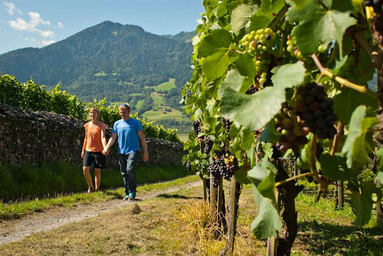 Die Weinrunde von Maienfeld nach Fläsch ist Teil des beschilderten Weinwanderweges, der in der Bündner Hauptstadt Chur startet und durch die sonnenverwöhnten Weingemeinden des Churer Rheintals führt. - Leichte Wanderung im Grenzgebiet der Kanton St. Gallen und Graubünden für Weinfreunde und Genießer.
