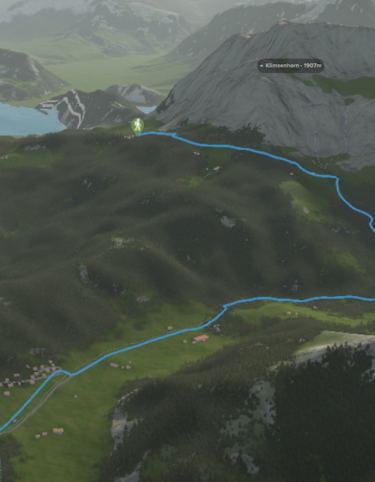 Der nun folgende Abstieg führt auf dem Schweizer Höhenweg über Alpweiden Richtung Nordwest. Man passiert die Alpwirtschaft Grodstubli und gelangt schließlich zurück zum Parkplatz Seebodenalp.