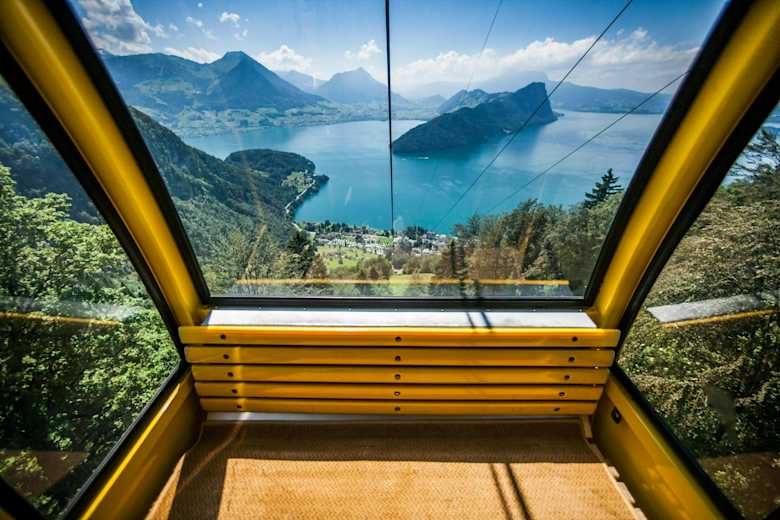 Seilbahnfans aufgepasst: Die Luftseilbahn Vitznau Wissifluh überwindet 930 m Länge und 448 m Höhendifferenz ohne eine einzige Stütze und ist zudem die einzig kombinierte Pendel- Umlaufbahn der Schweiz. Die Kabinen sind an einem einzigen Seil aufgehängt, das gleichzeitig als Trag- und Zugseil dient. Dieses einfache, aber effektive System funktioniert bereits seit 1908.