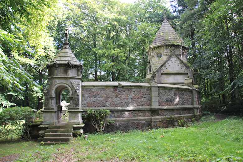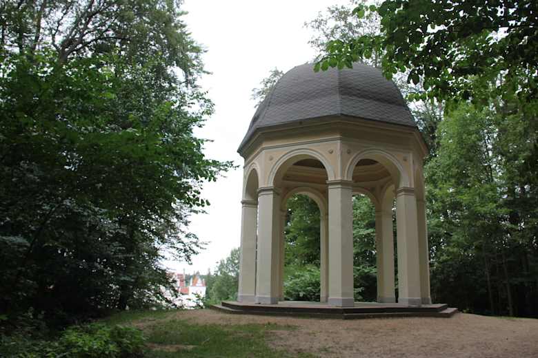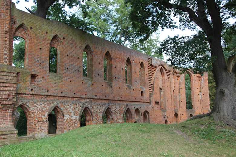 Nach einer verdienten Pause wandert man nach links bis zum Ende des Waldes. Hier geht man nach links zum Apollotempel. Vom Tempel spaziert man zum Erbbegräbnis derer von Arnim, dem Löwentempel. Man verlässt den Wald und überquert die Straße. Wenig später überquert man eine zweite Straße und geht zum Boitzenburger Tiergarten. Geradeaus nimmt der Weg die Wanderer weiter mit bis zur Hirschbrücke. Man geht nach links bergauf, bis nach rechts ein kurzer Abstecher zum Verlobungsstein führt. Über den Jägerplatz und den Hexenkiefer wandert man zum Weinberg und zum Parkplatz an der Klosterruine. Auf einem Teerweg gelangt man zum Gutshof und weiter zum Ausgangspunkt am Schloss.