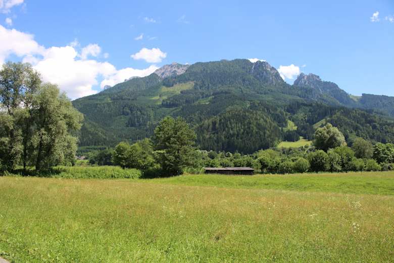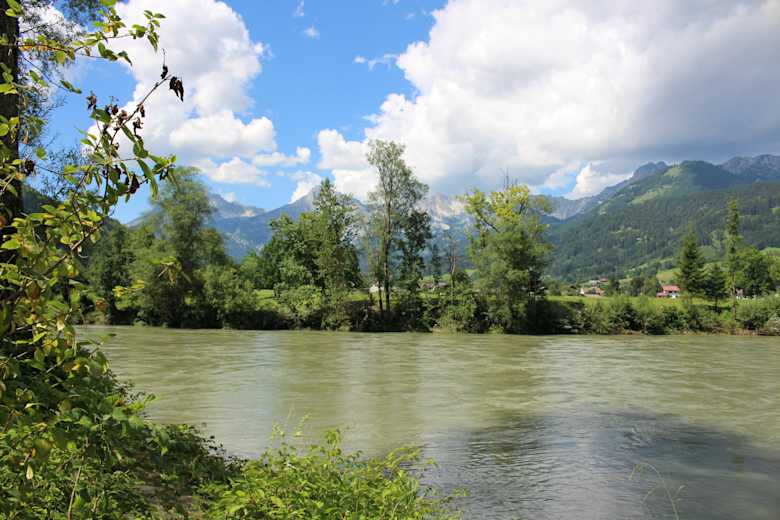 Entlang von Wiesen und kurzen Waldstücken wandert man von Admont in der Steiermark zur Enns. Zahlreiche Bänke und kleine Brücken säumen den Weg. Den Rahmen bilden die Gipfel des Gesäuses, die über dem Ennstal thronen.