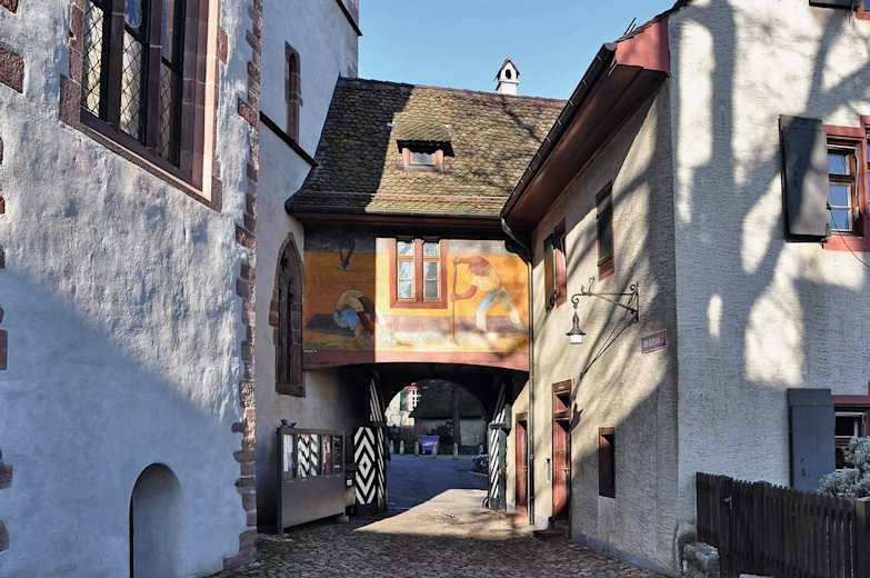 Über mittelalterliche Gassen geht es zurück zum historischen Marktplatz. Die letzte Treppe führt am Pharmaziemuseum der Universität Basel vorbei, in dem noch heute Utensilien aus der Zeit von Paracelsus (mit bürgerlichem Namen Theophrastus von Hohenheim; 1493–1541) zu sehen sind. Paracelsus - bedeutender Naturheillehrer und Therapeut war von 1527 bis 1528 Stadtarzt Basels.