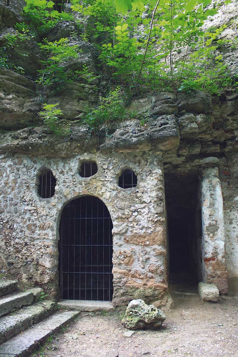 Das Gelände wird jetzt spektakulärer, ein paar Kletterer versuchen sich hier ab und zu am seltenen Nagelfluh-Fels, der weiter unten auch noch immer kommerziell abgebaut wird, und man nutzt die steinerne Treppe, die zunächst zu den ehemaligen Einsiedlerhöhlen führt, dann aber nach oben zur Magdalenenklause.