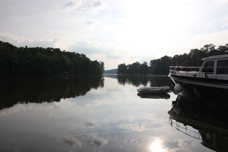 Vom Multikulturellen Centrum folgt man dem Wanderweg am See entlang zum nahen Strandbad. Wenig später teilt sich der Weg. Man wandert entlang der Markierung Uferweg nach links. Nun spaziert man am südlichen Ufer des Templiner Stadtsees entlang. Immer wieder kann man sich auf einer Bank hinsetzen und die traumhafte Landschaft bewundern. Der Stadtsee geht in den Bruchsee über. Hier ist das Gewässer relativ flach.