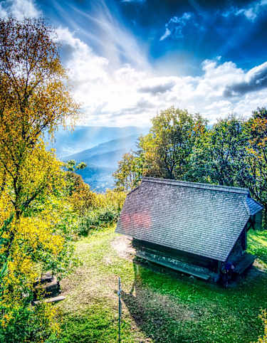 Dem breiten Rücken stets bergab folgend erreicht man schließlich das Schwarzenbergchrüz und folgt der Strasse bis kurz vor Buchstalden. Hier zweigt die Route rechts auf den Wanderweg ab und zieht über Neuhütte nach Schimbrig empor. Hier lohnt ein kurzer Abstecher zur Schwefelquelle beim 1933 abgebrannten Kurhotel Schimbrig-Bad.