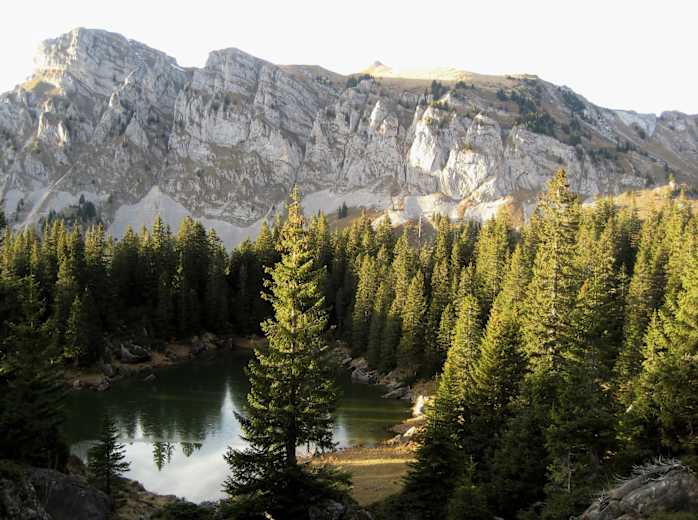 Unterwegs lohnt ein Picknick am Änggelauenenseeli im Bergsturzgebiet am Fusse des Fürsteins. Es ist der einzige natürliche See im Entlebuch.