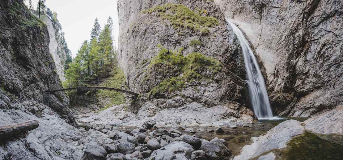 Wasserfall und kleine Hängebrücke beim Chessiloch in Flühli Foto: Fabienne Felder, UNESCO Biosphäre Entlebuch Bildergalerie (4)