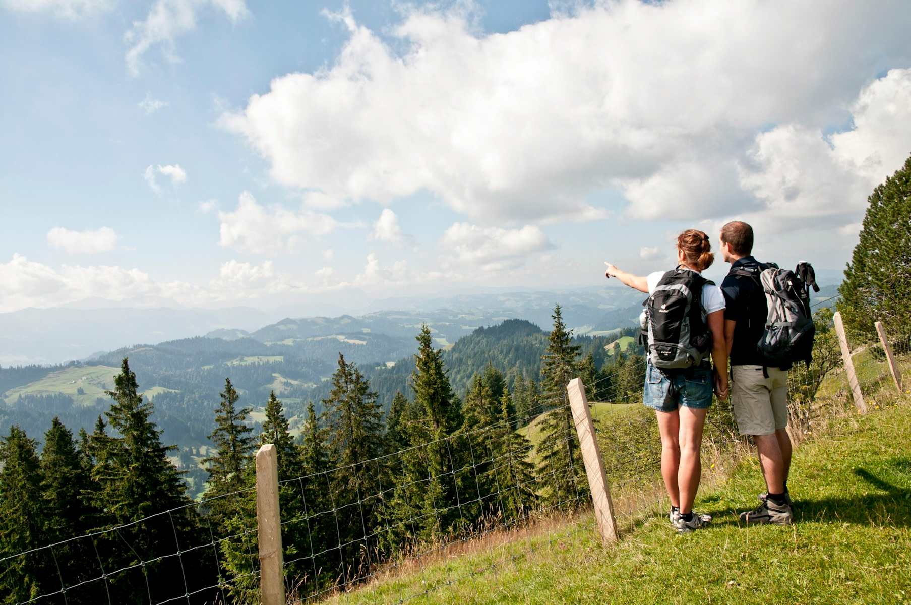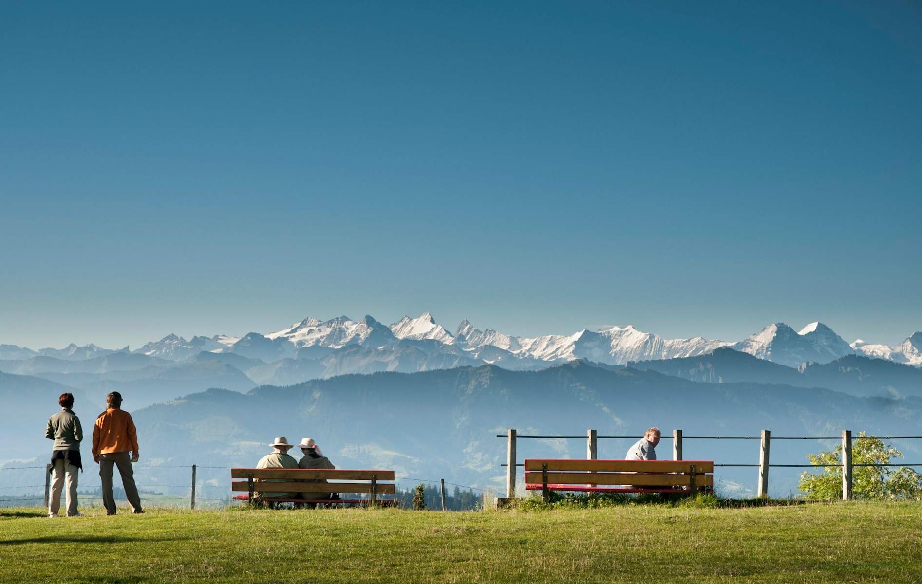Aus der Ferne wirkt der Napf (1.408 m) an der Grenze von Bern und Luzern wie ein unscheinbarer Hügel. Dennoch bietet sich am Gipfel dieses sternenförmig mit Wanderwegen erschlossenen Berges ein traumhafter Ausblick. Die familientaugliche Wanderung von Bramboden eröffnet faszinierende Einblicke in die Hügelwelt des Entlebuchs und des Emmentals.
