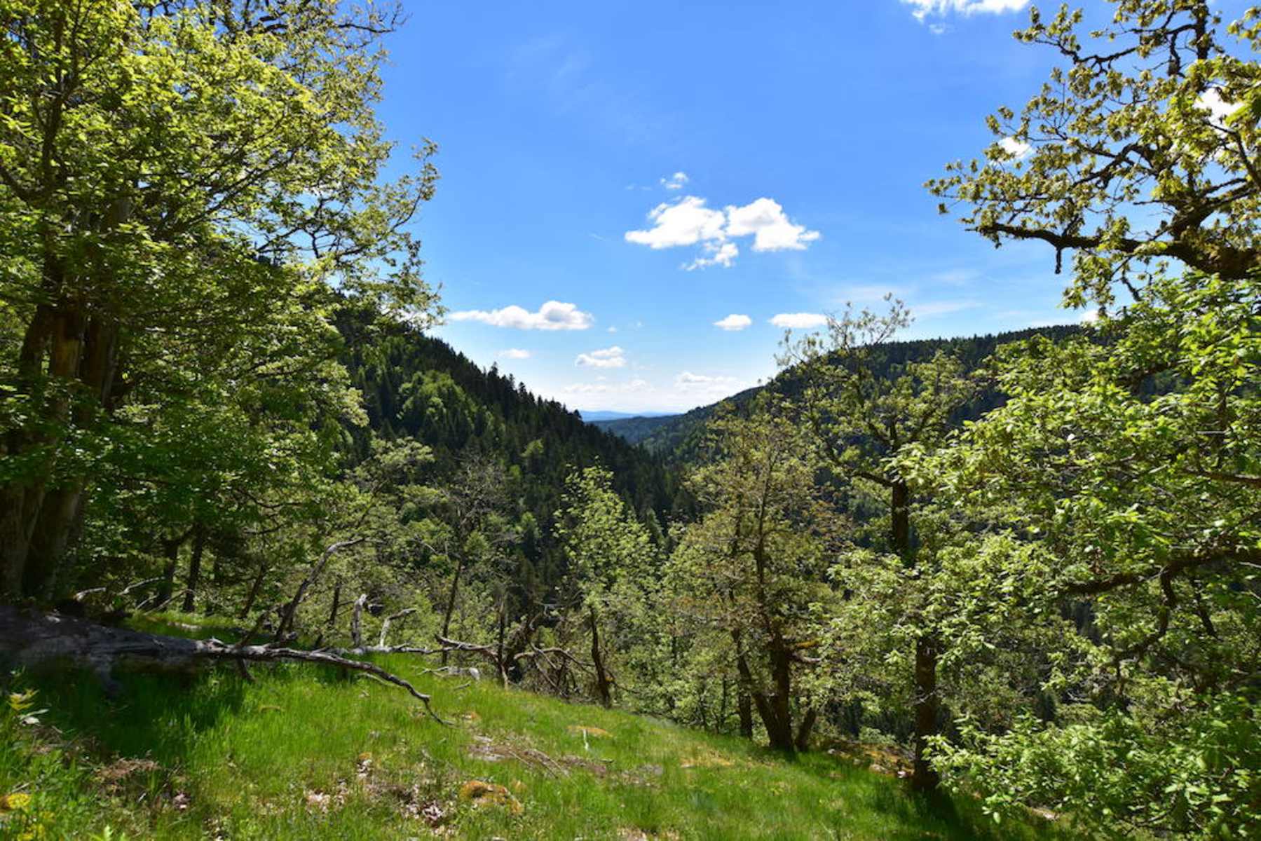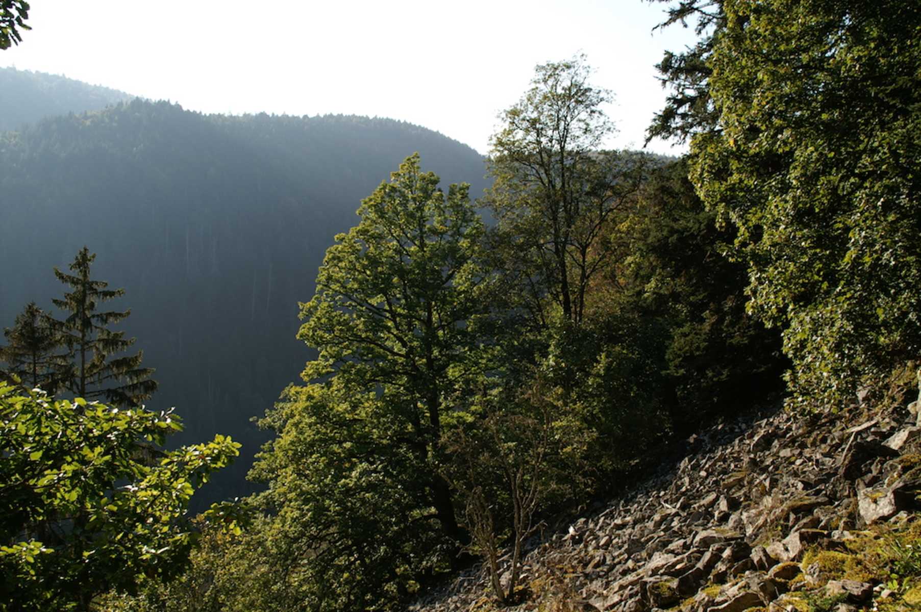 Dieser Weg führt durch einen dunklen, urtümlichen, immer bodengrünen Wald mit schmalen Steigen, steilen Hängen, tiefen Schluchten und Bächen. Schwarzwald wie man ihn sich vorstellt. Immer wieder gibt es Aussichtsschneisen und auch einmal grüne Wiesen mit tollen Aussichten. Hier in diesem Wald findet man Bäume jeden Alters, die einfach Wachsen dürfen. Dazu eine Felskulisse mit Blöcken, Terrassen und steilen Felswänden.