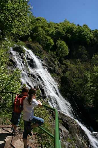 Der Wasserfallsteig im Schwarzwald führt zum Todtnauer Wasserfall, dem mit 97 Metern höchsten Naturwasserfall Baden-Württembergs. Auf der Wanderung achtet man auf die Stempelstellen, die auf diesem Premiumwanderweg in Form einer Kuckucksuhr aufgestellt wurden. Damit kann man die Wanderungen im Hochschwarzwälder Wanderpass dokumentieren.