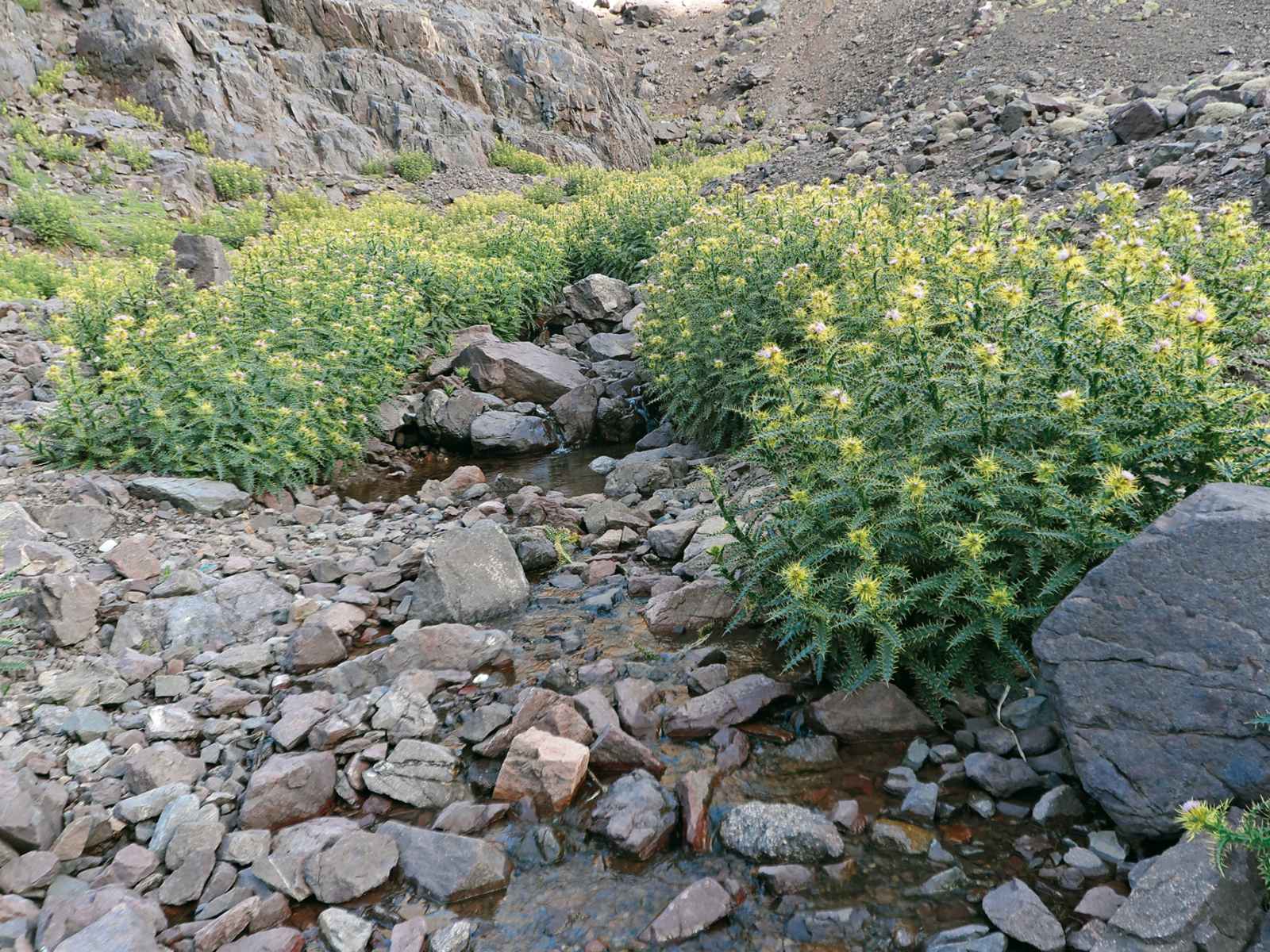 Teppiche aus Disteln geben dem oberen Mizane-Tal einen grünen Anstrich. Foto: Michael Wellhausen
