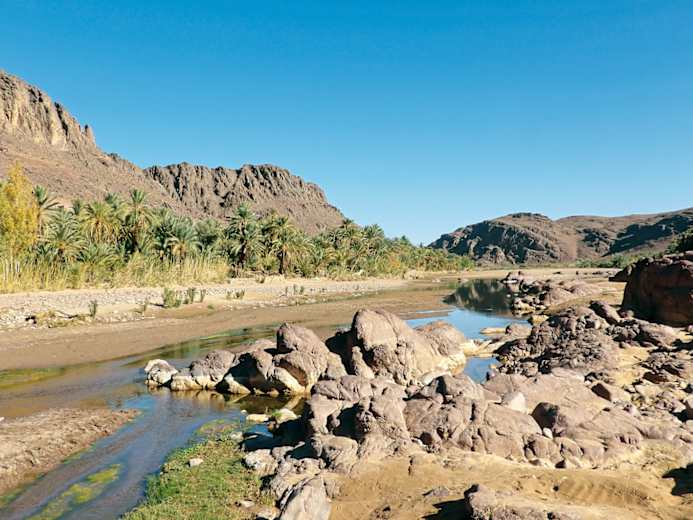 Durch eine märchenhafte Flussoase und ein unberührtes Urzeitgebirge in Marokko.