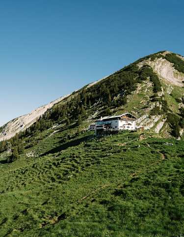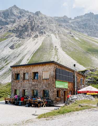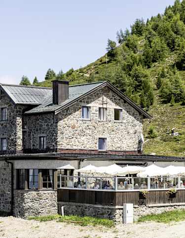 Das Padasterjochhaus steht auf 2.232 auf einer Geländeschulter in perfekter Aussichtslage in den Stubaier Alpen am Fuße der Kesselspitze. Man kann sich kaum sattsehen am Panorama des Olperers, den man direkt vor sich hat. Der Anstieg von Trins führt über einen schönen Steig zur Hütte. Mountainbiker nutzen die Forststraße bis zur Hütte.