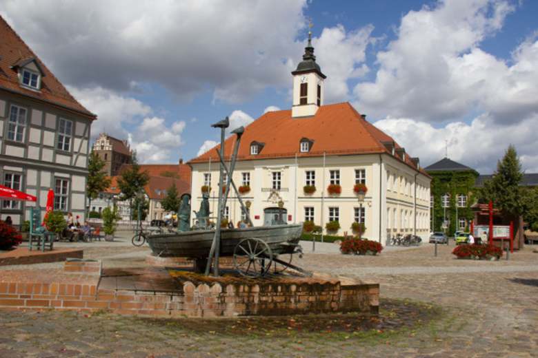 Für die Besichtigung von Angermünde sollten wir etwas Zeit einplanen. Es gibt jede Menge zu Entdecken: die Kirche St. Maria mit ihrem 53 Meter hohen Turm, der historische Stadtkern mit dem sanierten Rathaus, die Franziskanerklosterkirche, der Pulverturm, der Tierpark und die Skulpturenpromenade am Mündesee.