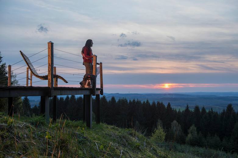 Die Rothaarsteig-Spur Dill-Bergtour führt zur mächtigen Lucaseiche und zur Aussichtsplattform auf der Tiefenrother Höhe.