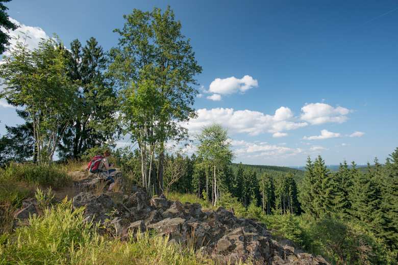 Die Rothaarsteig-Spur Trödelsteinpfad führt durch die basalthaltige Landschaft zwischen Westerwald und Rothaargebirge.