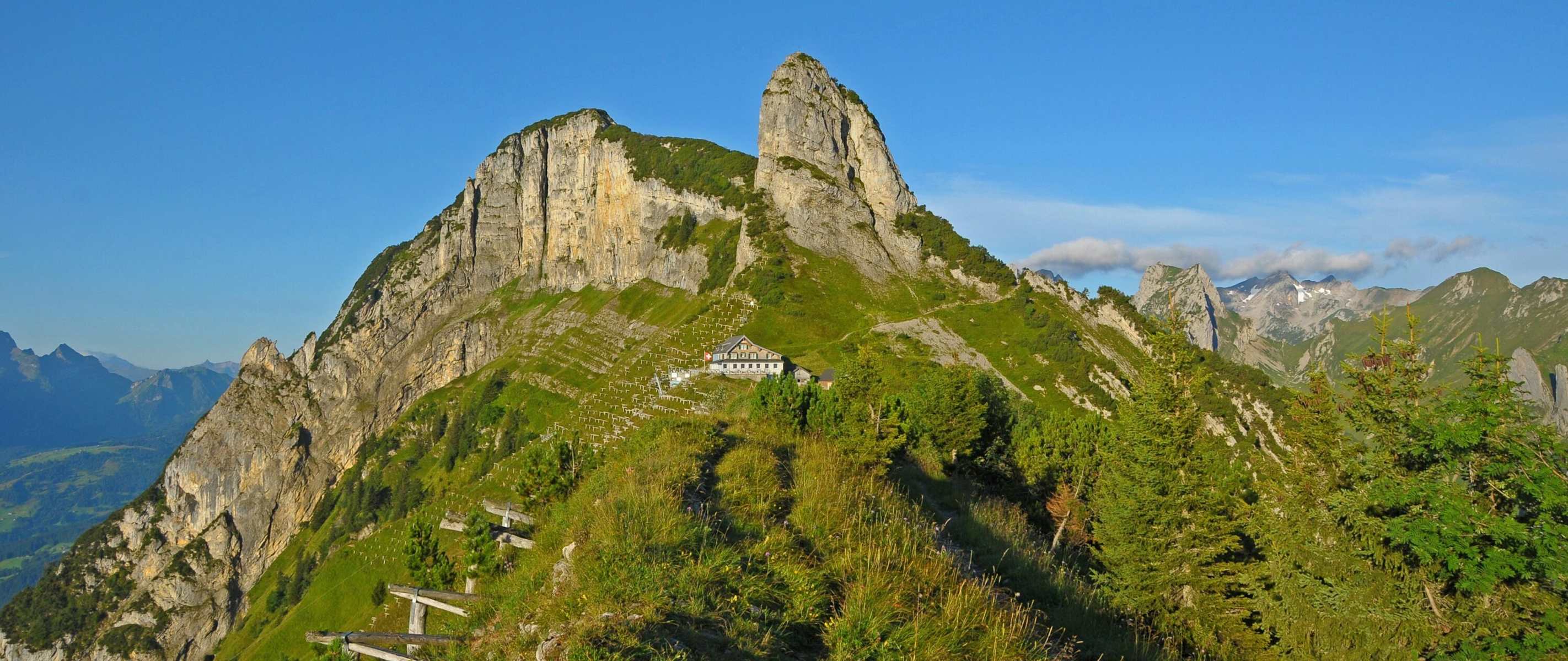 Im Alpsteingebiet wurde der erste geologische Wanderweg der Schweiz errichtet: Vom Hohen Kasten (1.794 m) geht es entlang der südlichen Kette des Alpsteins zur Saxerlücke und von dort hinab zum Berggasthaus Bollenwees (1.471 m) am idyllischen Fählensee.