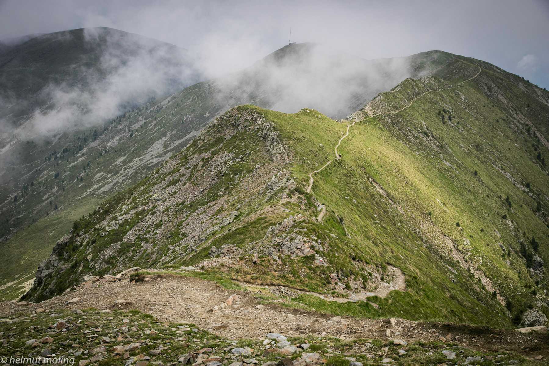 Als Rückweg folgt man nun dem Brixner Höhenweg Nr. 30, der nahezu eben an der oberen Waldgrenze und teils im Zirbenhochwald bis zur Bergstation der Kabinenbahn verläuft.