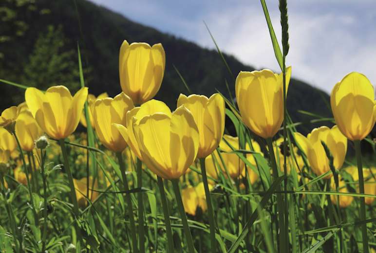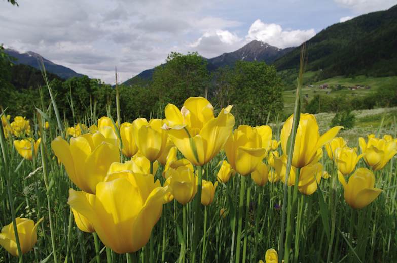 In der zweiten Maihälfte zieht die Blüte der weltweit einmaligen Grengjer Tulpen jedes Jahr zahlreiche Besucher aus der Schweiz und dem Ausland an, die nach Grengiols kommen, um die Blütenpracht auf den Wiesen der Chalberweid zu bestaunen.