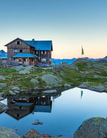 Das Bergrestaurant Ahornhütte auf 1.965 m in den Zillertaler Alpen ist eigentlich mit der Ahornbahn ganz gemütlich zu erreichen. Wer sich aber sportlich betätigen will, der kann auch von Mayrhofen - von der Talstation der Ahornbahn - zu Fuß zur Hütte wandern. Nach dem vierstündigen Anmarsch freut man sich dann auch so richtig auf die Tiroler Spezialitäten, die die Ahornhütte zu bieten hat.