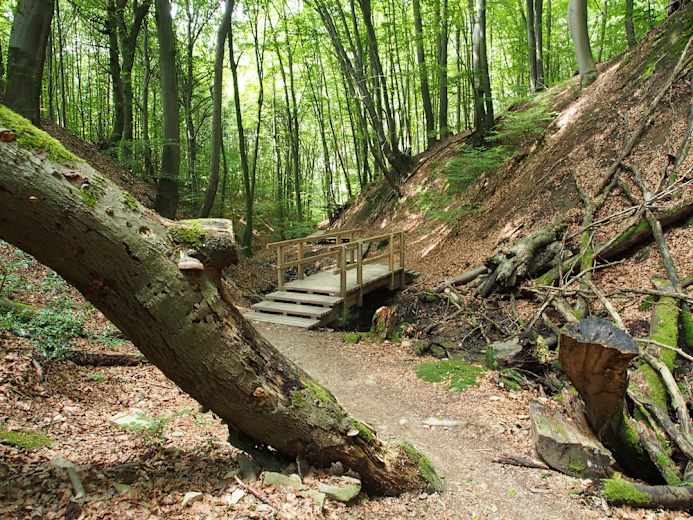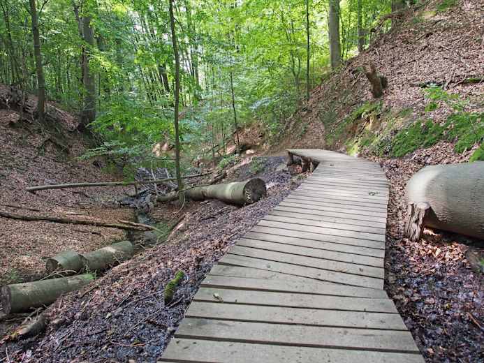 Schließlich geht man wieder zurück zum Löwenburger Hof, in dem eine gemütliche Einkehr auf die Wanderer wartet. Anschließend wandert man über das romantische Tretschbachtal bergab bis zum Dicken Stein. Hier biegt man nach links ab und erreicht einen breiten Forstweg, auf dem es bergauf geht. Man überquert die L144 und wandert auf der rechten Seite der Straße zurück zum Wanderparkplatz.