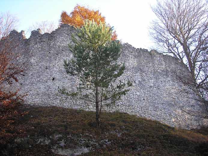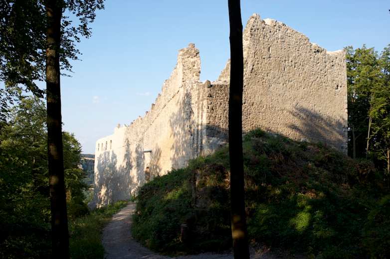 Man unternimmt einen kurzen Abstecher zur Burguine Stossenberg (Rundeck), von der man einen tollen Ausblick auf das Anlautertal genießt. Anschließend geht man wieder zurück zur Straße und wandert weiter zum Burgstall Wieseck. In einem Bogen geht man hinunter nach Erlingshofen.