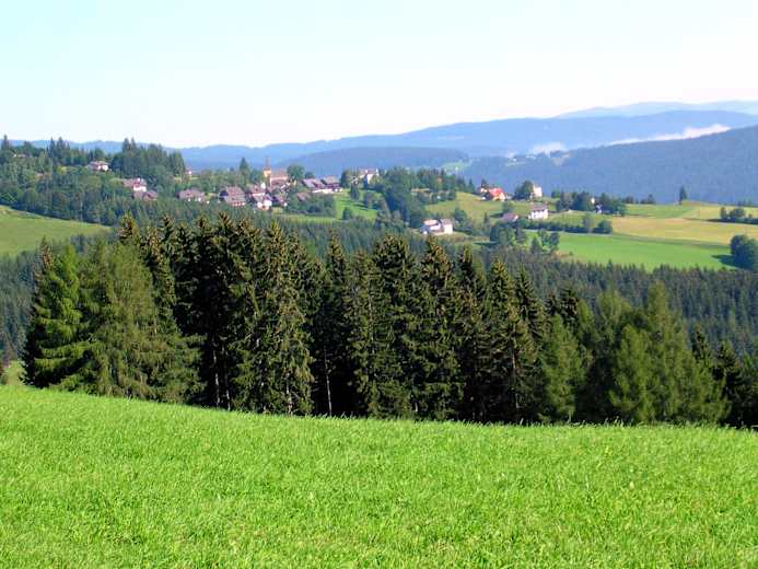 In der Pack orientiert man sich an der Bushaltestelle an der Hauptstraße und biegt dort auf die schmale Straße Richtung Westen ein. Dieser folgt man immer gerade aus, bis sie bei den letzten Häusern endet.