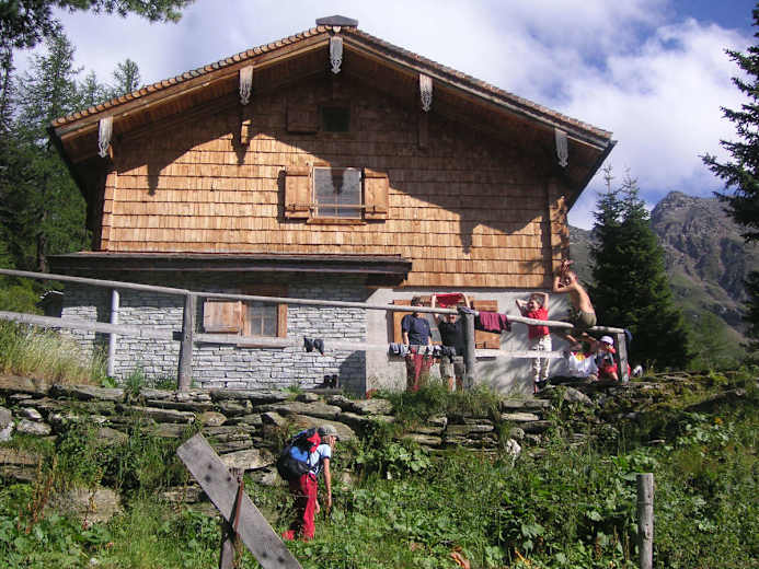 An der nächsten Weggabelung hält man sich links. Durch lichter werdenden Wald geht es leicht aufwärts, bis links der Weg 111 zum Niedersachsenhaus abzweigt. Diesem folgend, erreicht man wenig später die Märchenkarhütte.