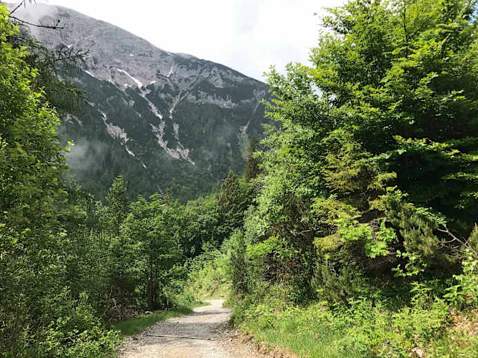 Anstieg durch den Wald zum Alpengasthaus Karwendel Foto: Christina Schwann, ökoalpin