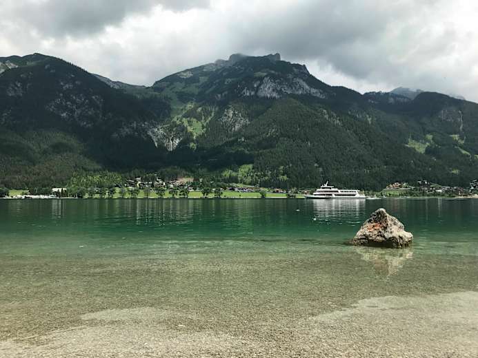 Wer nicht mit dem Schiff fahren möchte, der kann natürlich auch zu Fuß entlang des Achensees nach Pertisau wandern. An warmen Sommertagen keine schlechte Idee, da es mehrere Möglichkeiten gibt, sich im herrlich klaren Wasser des Achensees zu erfrischen.