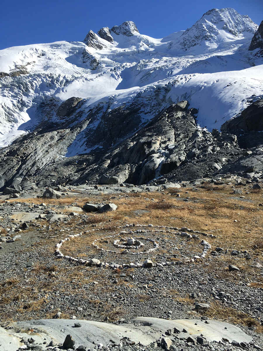 Nachdem man einen Moment innegehalten und die Kraft der Natur bestaunt hat, geht es weiter zum Philosophenplatz, einer Steinspirale, die zum Denken, Sinnieren und Philosophieren anregt: Ein Gletscher ist eine aus Schnee hervorgegangene Eismasse mit einem klar definierten Einzugsgebiet, die sich aufgrund von Hangneigung, Struktur des Eises, Temperatur und der aus der Masse des Eises und den anderen Faktoren hervorgehenden Schubspannung eigenständig bewegt. Gletscher speichern 70 % des Süßwassers der Welt und sind nach den Ozeanen die größten Wasserspeicher der Erde.