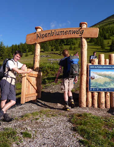 Man quert die Straße und wandert auf dem SI vorbei an der Kapelle aufwärts. An der Wegspinne hält man sich gerade aus, bzw. rechts und folgt dem Weg Nr. 131 - ein Stück entlang des Naturlehrpfades -, bis man rechts zur Nemes Alpe abzweigt.