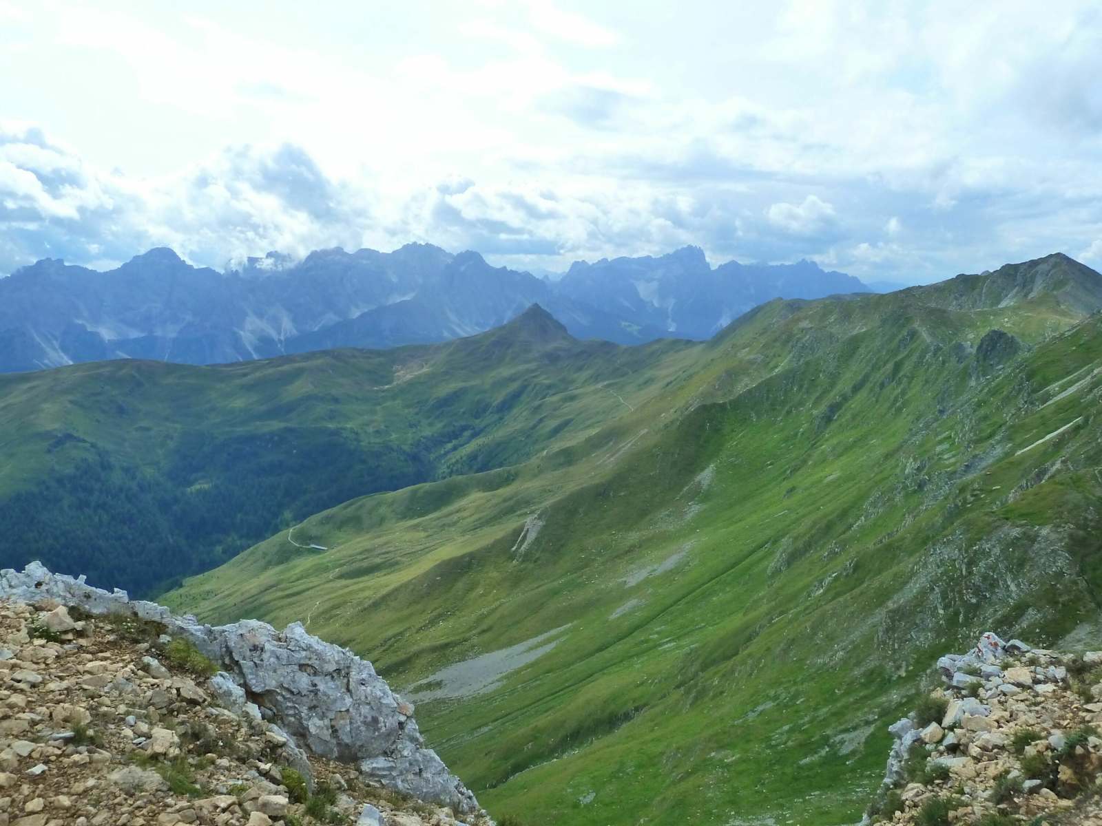Im Anschluss folgt man dem Höhenweg in westlicher Richtung zur Pfannspitze mit 2.678 m und genießt noch einmal das fantastische Panorama über den Karnischen Kamm einerseits und auf die Sextner Dolomiten im Süden andererseits.